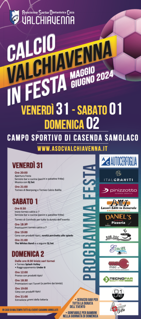 Venerdì 31 maggio, sabato 1 e domenica 2 giugno2024 presso il campo sportivo di Casenda Samolaco.